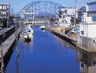 江戸時代(えどじだい)より漁業(ぎょぎょう)を中心に生活していた人びとは、境川に漁船(ぎょせん)を留(と)め、境川を陸(りく)と海をつなぐ通路としました。また、川の水は飲み水や炊事(すいじ)・洗濯(せんたく)の水などに利用されるなど、生活に欠(か)かすことのできない役割(やくわり)を果(は)たしてきました。
